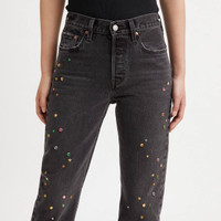 Close your eyes. Think “jeans.” Now open. They were 501® Originals, right? With a classic straight leg and iconic styling, they’re literally the blueprint for every pair of jeans in existence—burned into the world’s collective cortex ever since Levi Strauss (the man himself!) introduced them in 1873. To this day they’ve never gone out of style. And they never will. - The original blue jeans - Our signature straight fit - A blank canvas for customization and self-expression Style # 125010465 Color: Glitter Bomb - Black How it Fits - Regular Through The Thigh - High rise: 10 3/4'' - Straight Leg - Inseam: 30'', Leg opening: 14'', Measurements based on size 27 waist Composition & Care - 100% cotton - Denim - Non-stretch - Button fly - 5-pocket styling - Machine wash cold - normal cycle. wash inside out with like colors, do not bleach, tumble dry medium, hot iron, dry clean possible - Imported