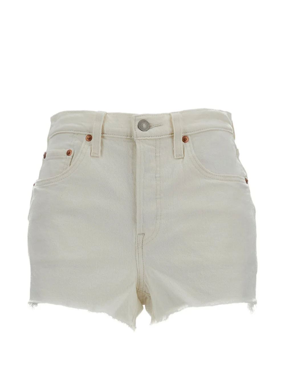 501 raw-cut fringed shorts Highlights - White - Five-pocket style - Raw-cut - Front closure Imported Composition Cotton 97%, Polyester 2%, Elastane 1% Washing instructions Read Manufacturer Guidelines
