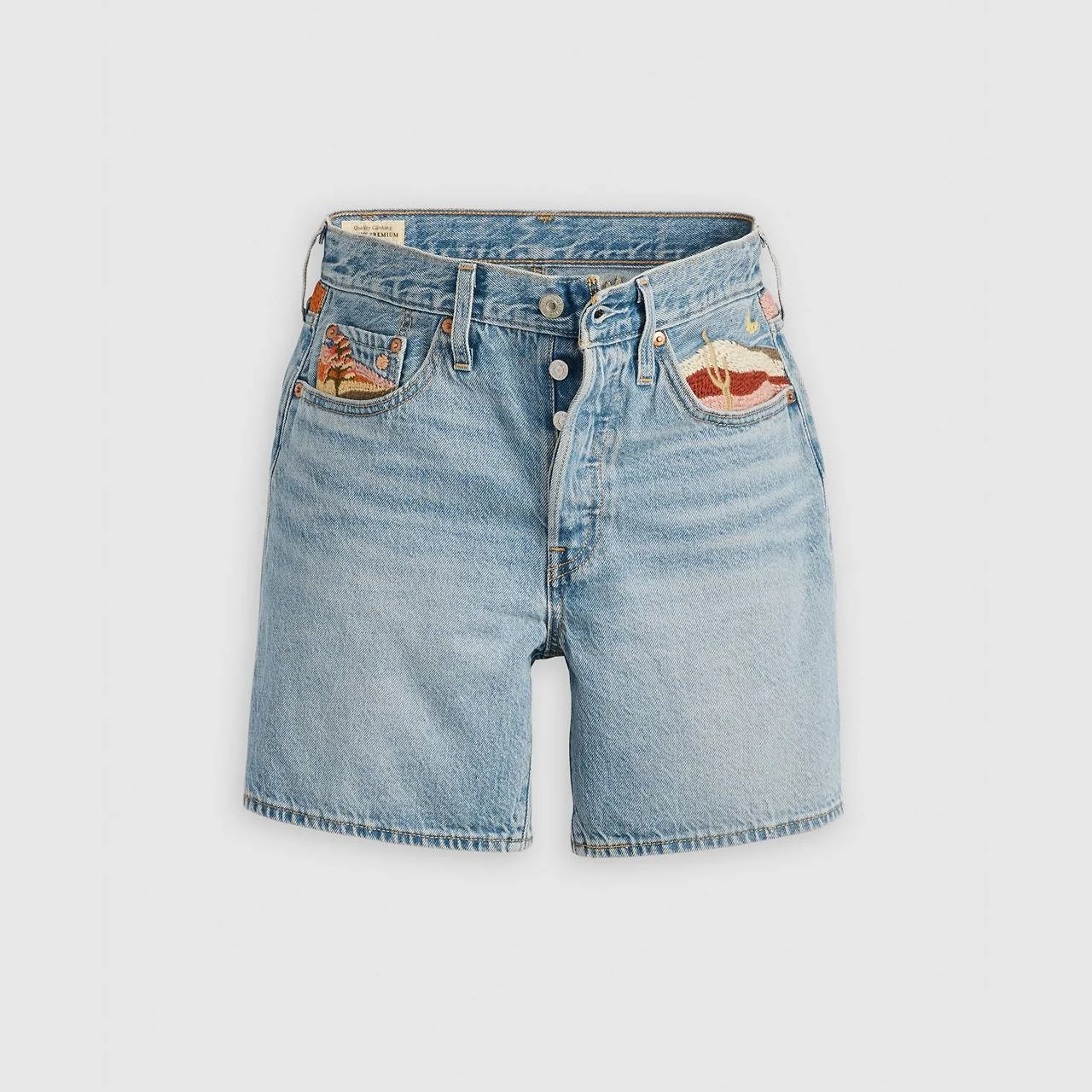 The first ever jean shorts. Modeled after the 501® Original Jeans, these denim shorts were made with our iconic vintage-inspired fit, a flattering high rise and a longer inseam. To this day, they’ve never gone out of style. And they never will. - A vintage-inspired pair of cut-offs - A universally-flattering summer essential - Hits mid-thigh for a versatile style - Guaranteed to never go out of style - Airy. Breathable. Light. This garment was made with lightweight cotton to keep you looking good and feeling comfortable. Style # 858330078 Color: Desert Utopia Short - Medium Wash How it Fits - Easy Through The Hip - High rise: 10 1/2" - Inseam: 6",Leg opening: 22",Measurements based on size 27 waist Composition & Care - 79% Cotton, 21% Lyocell (Lenzing TENCEL™ Lyocell) - Denim - Non-stretch - Button fly - 5-pocket styling - Wash your jeans once every 10 wears at most; this increases their lifespan and saves natural resources.Machine wash cold, Do not bleach, Tumble dry medium, Warm iron if needed, Dry cleaning possible, Wash inside out with like colors - Made in China, Cambodia