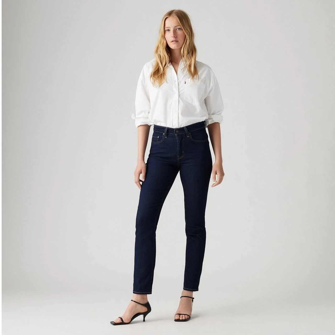 High rise. Slim fit. Straight leg. We took your favorite high rise and updated it with an ultra-modern straight leg. Part of our signature ‘Lot 700’ fits, our 724 High-Rise Straight jeans are designed to flatter—all day, every day. - A versatile fit with a flattering high-rise - Finished with an ultra-modern straight leg - Authentic denim character enhanced with supersoft stretch. For jeans that'll leave you starry-eyed. That's Levi's® Stellar Stretch. Thanks to excellent built-in recovery, they champion your curves and move with you—without sagging or bagging—everywhere and every wear. Style # 188830011 Color: Cast Shadows - Dark Wash How it Fits - Slim Through The Hip And Thigh - High rise: 10 1/4'' - Straight Leg - Inseam: 30'',Leg opening: 13 3/4'',Measurements based on size 27 waist Composition & Care - 80.0% cotton, 19.0% polyester, 1.0% LYCRA® - Denim - Stretch - Zip fly - 5-pocket styling - Water