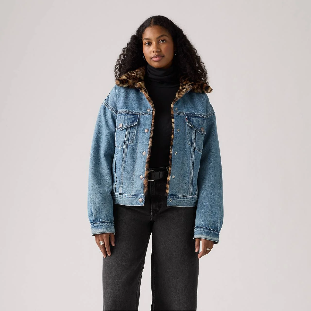 Our '90s Fur Trucker Jacket makes an outfit. You'd be hard-pressed to find a jacket with an easier shape, more versatile weight or inherent sense of cool. Bonus: This throwback cut features a pitched silhouette for a distinctly ‘90s feel and a cozy fur lining. - An homage to our iconic Levi’s® Trucker Jacket - Constructed with a unique pitched '90s profile and two-flap pocket design - With a cozy fur lining Style # 003RX0001 Color: Dolly Day - Medium Wash How it Fits - Relaxed fit Composition & Care - 95% Cotton, 5% Recycled Cotton - Denim - Non-Stretch - Long sleeves - Imported