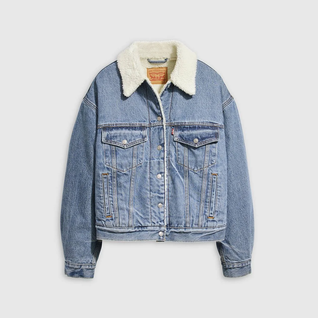Our '90s Sherpa Trucker Jacket makes an outfit. You'd be hard-pressed to find a jacket with an easier shape, more versatile weight or inherent sense of cool. Bonus: This throwback cut features a pitched silhouette for a distinctly ‘90s feel and is lined with ultra cozy sherpa. - An homage to our iconic Levi’s® Trucker Jacket - Constructed with a unique pitched '90s profile and two-flap pocket design - A blank canvas for self-expression that can be passed down for generations - Lined with sherpa - Gets better over time with natural wear Style # A44350011 Color: Inner Adventurer - Dark Wash How it Fits - Relaxed fit Composition & Care - Primary Fabric: 100% Cotton; Lining: 100% Polyester - Denim - Non-stretch - Long sleeves - Recycled cotton - Machine wash cold - synthetic /permanent press cycle, Do not bleach, Tumble dry medium, Warm iron if needed, Dry cleaning possible, Wash with like colors - Made in Sri Lanka