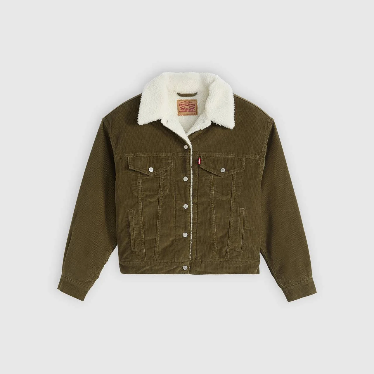 Our '90s Sherpa Trucker Jacket makes an outfit. You'd be hard-pressed to find a jacket with an easier shape, more versatile weight or inherent sense of cool. Bonus: This throwback cut features a pitched silhouette for a distinctly ‘90s feel and is lined with ultra cozy sherpa. - An homage to our iconic Levi’s® Trucker Jacket - Constructed with a unique pitched '90s profile and two-flap pocket design - A blank canvas for self-expression that can be passed down for generations - Lined with sherpa - Made with soft corduroy Style # A44350066 Color: Ivy Green - Green How it Fits - Relaxed fit Composition & Care - Primary Fabric: 100% Cotton; Lining: 100% Polyester - Corduroy - Non-Stretch - Long sleeves - Imported