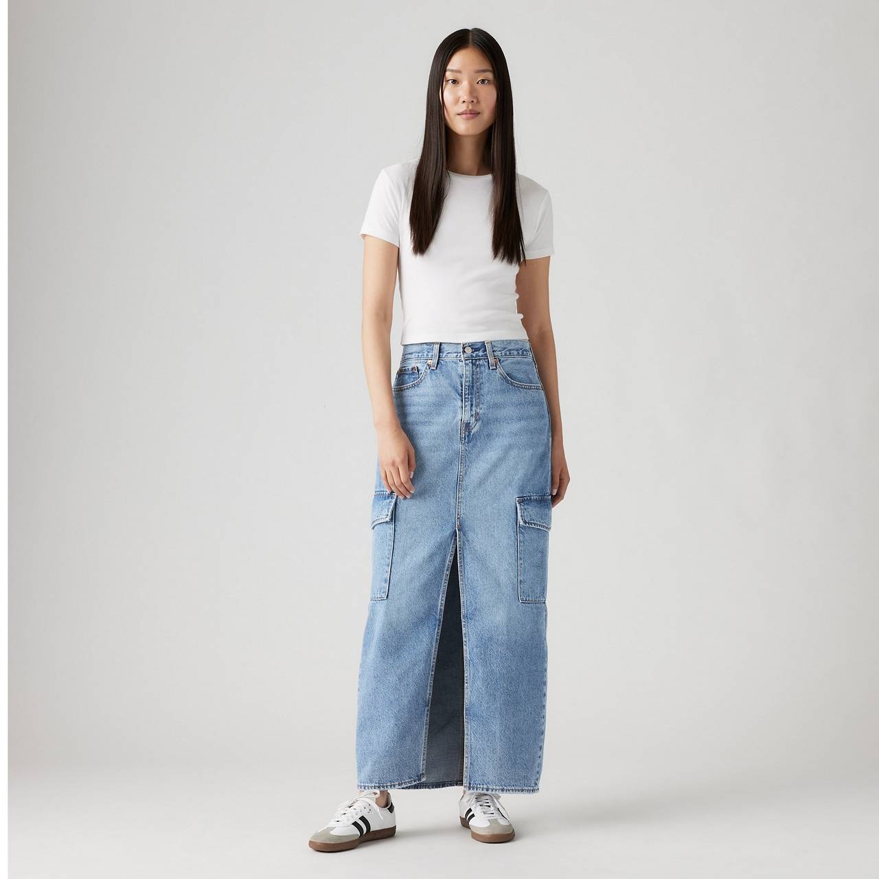 Few styles are as versatile and easy as a midi skirt. Casually cool and a little '90s, our Ankle Column Cargo Skirt features a flattering mid rise, an ankle-skimming midi length, utility pockets and a playful slit right down the middle. - A versatile cargo midi skirt - With a flattering mid rise - Finished with utility pockets Style # 0005S0000 Color: Maximize the Moment - Medium Wash How it Fits - Easy Through The Hip - Mid rise Composition & Care - 100% Cotton - Denim - Non-stretch - Button fly - Non 5 Pocket - Wash your jeans once every 10 wears at most; this increases their lifespan and saves natural resources.Machine wash cold, Do not bleach, Tumble dry medium, Hot iron if needed, Dry cleaning possible, Wash inside out with like colors - Made in China