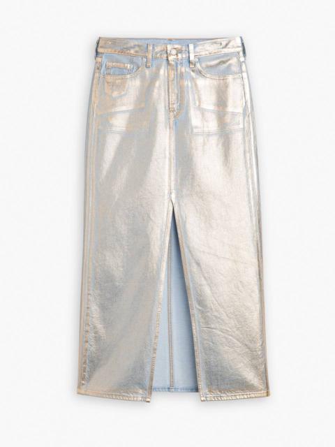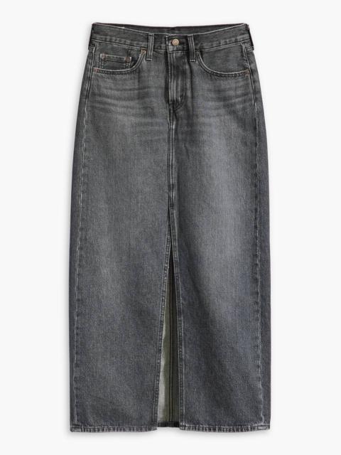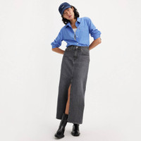 Few styles are as versatile and easy as a long skirt. Casually cool and a little '90s, our Column Skirt features a flattering mid rise, an ankle-skimming length and a playful slit right down the middle. - A versatile, easy ankle-grazing skirt - With a flattering mid rise - Finished with a playful slit right down the middle - We made this garment with post-industrial recycled cotton fiber Style # A75120003 Color: Adventure Seeker - Black How it Fits - Easy Through The Hip And Thigh - Mid rise: 38 1/8" - Inseam: N/A",Leg opening: 40 1/2",Measurements based on size 27 waist Composition & Care - 95% Cotton, 5% Recycled Cotton - Denim - Non-Stretch - Button fly - Non 5 Pocket - Recycled cotton - Wash your jeans once every 10 wears at most; this increases their lifespan and saves natural resources.Machine wash cold, Do not bleach, Tumble dry medium, Hot iron if needed, Dry cleaning possible, Wash inside out with like colors - Made in Sri Lanka