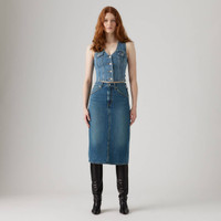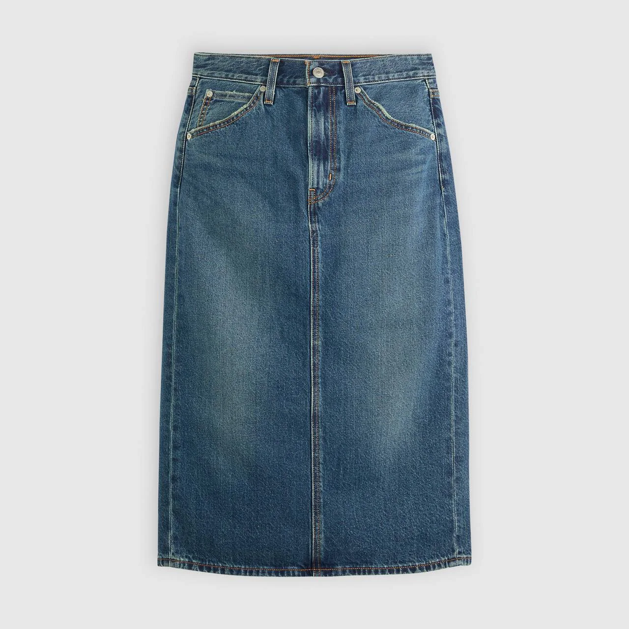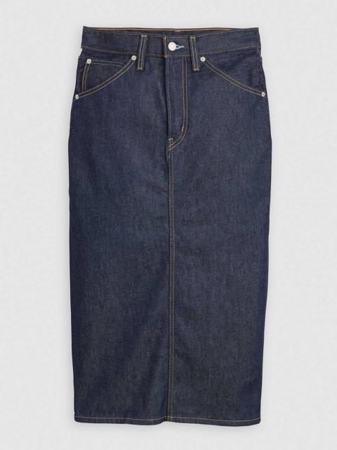 A vintage-inspired skirt, minus the hunt. Our High-Rise Back Slit Skirt features a waist-defining rise, a back slit and a flattering slim fit. - A vintage-inspired denim skirt - Cut with a slim fit - Features a back slit Style # 001VH0006 Color: Review Time - Medium Wash How it Fits - High rise: 29 1/2" - Leg opening: 36 5/8",Measurements based on size 27 waist Composition & Care - 100% Cotton - Denim - Non-Stretch - Zip fly - 5-pocket styling - Imported