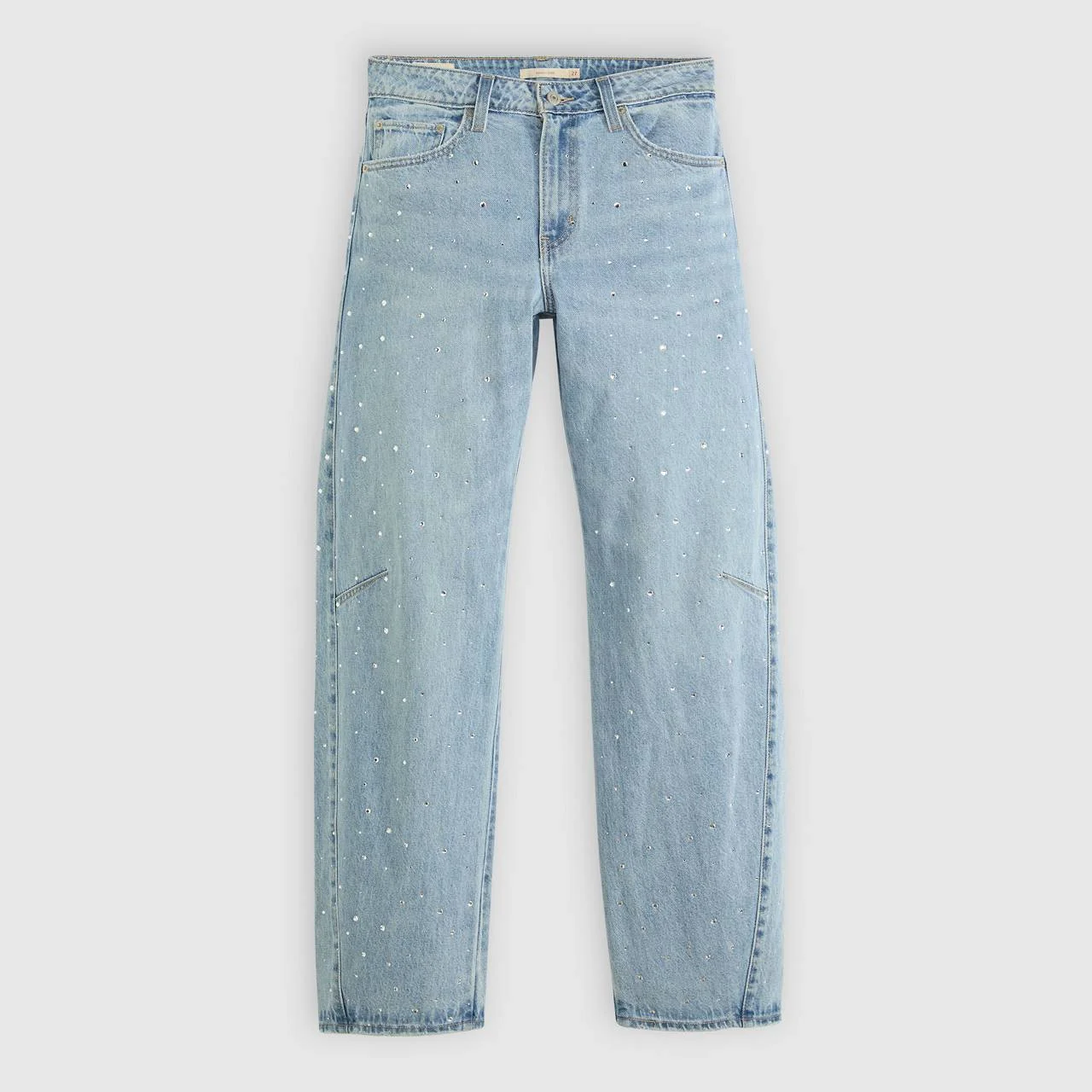 The curved leg is here to stay. With a mid rise and a loose fit, our Baggy Dad Barrel jeans are relaxed yet flattering with extra room for a subtle edge. - Just-right curved-leg jeans that stack at the hem - Roomy and slouchy through the hip and thigh - Complete with a shiny finish - Complete with a shiny finish - We recommend ordering one size up for a loose look Style # 0039A0007 Color: Dazzle Me - Medium Wash How it Fits - Loose Through The Hip And Thigh - Mid rise - Tapered leg Composition & Care - 100% Cotton - Denim - Non-Stretch - Zip fly - 5-pocket styling - Imported