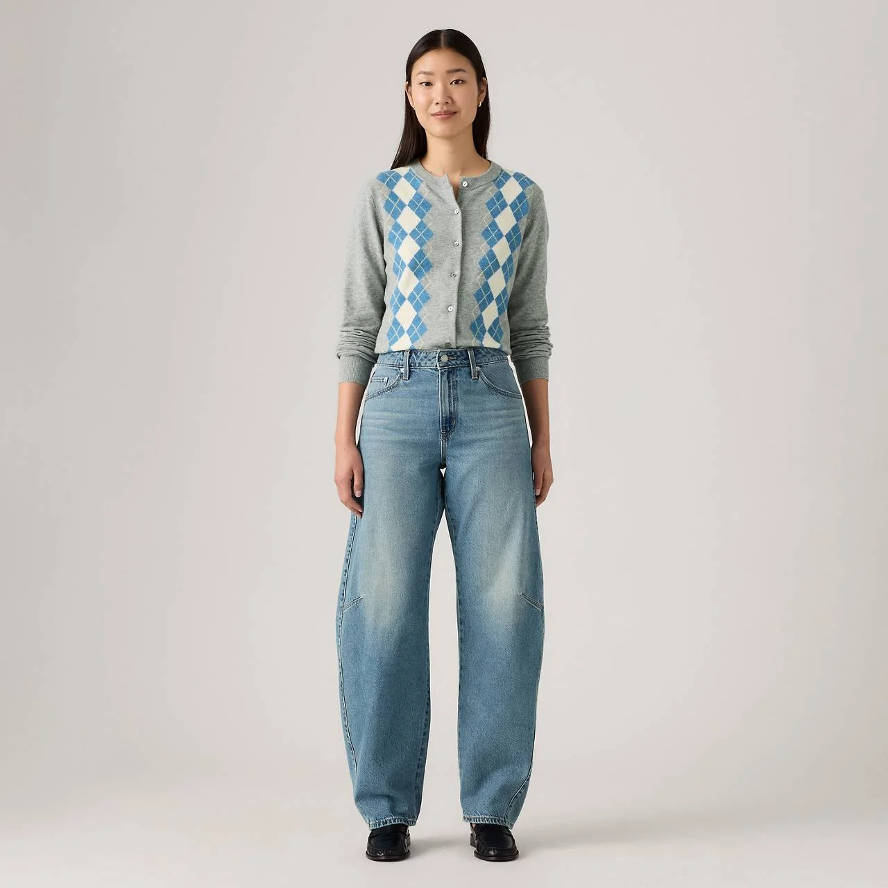 The curved leg is here to stay. With a mid rise and a loose fit, our Baggy Dad Barrel jeans are relaxed yet flattering with extra room for a subtle edge. - Just-right curved-leg jeans that stack at the hem - Roomy and slouchy through the hip and thigh - Features knee darts - We recommend ordering one size up for a loose look Style # 0039A0002 Color: Easy Days - Medium Wash How it Fits - Loose Through The Hip And Thigh - Mid rise - Tapered leg Composition & Care - 100% Cotton - Denim - Non-Stretch - Zip fly - 5-pocket styling - Imported