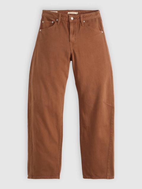 The curved leg is here to stay. With a mid rise and a loose fit, our Baggy Dad Barrel jeans are relaxed yet flattering with extra room for a subtle edge. - Just-right curved-leg jeans that stack at the hem - Roomy and slouchy through the hip and thigh - Features knee darts - We recommend ordering one size up for a loose look Style # 0039A0000 Color: Rebel Edge - Black How it Fits - Loose Through The Hip And Thigh - Mid rise - Tapered leg Composition & Care - 95% Cotton, 5% Recycled Cotton - Denim - Non-stretch - Zip fly - 5-pocket styling - Imported