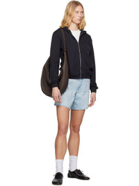 Non-stretch cotton- and linen-blend denim shorts. Fading and whiskering throughout. · Baggy-fit and lightweight · High-rise · Belt loops · Five-pocket styling · Zip fly · Logo patch at back waistband · Logo flag at back pocket · Logo-engraved silver- and copper-tone hardware · Contrast stitching in beige Supplier color: Luxury trip 85% cotton, 15% linen. Made in Sri Lanka 251099F088013