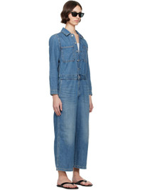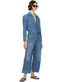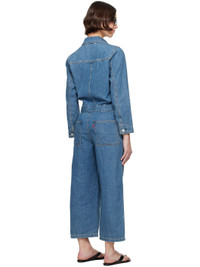 Straight-leg non-stretch cotton- and linen-blend denim jumpsuit. Fading and whiskering throughout. · Spread collar · Button closure · Patch pockets at chest · Four-pocket styling · Zip fly · Buttoned barrel cuffs · Logo flag at back pocket · Logo-engraved silver-tone hardware · Contrast stitching in tan Supplier color: Stop flaxing jumpsuit/Medium wash 85% cotton, 15% linen. Made in Sri Lanka 251099F070009