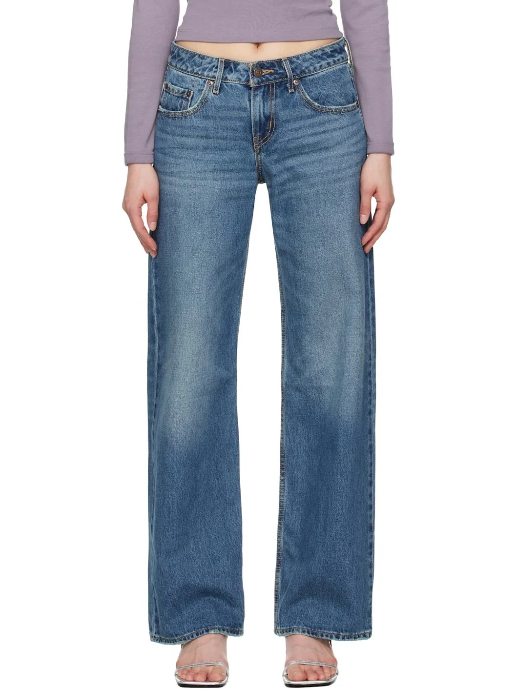 Loose-fit and straight-leg non-stretch denim jeans. Fading, whiskering, and subtle distressing throughout. · Low-rise · Belt loops · Five-pocket styling · Zip fly · Leather logo patch at back waistband · Logo flag at back pocket · Logo-engraved bronze-tone hardware · Contrast stitching in tan Part of the Levi's® Premium collection. Supplier color: Good life/Dark wash 100% cotton. Made in Viet Nam 251099F069065