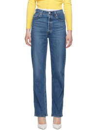 Slim-fit and straight-leg stretch denim jeans. Fading, whiskering, and subtle distressing throughout. · High-rise · Belt loops · Five-pocket styling · Button fly · Leather logo patch at back waistband · Logo flag at back pocket · Logo-engraved silver- and copper-tone hardware · Contrast stitching in tan Supplier color: Valley view 99% cotton, 1% elastane. Made in Cambodia 251099F069057
