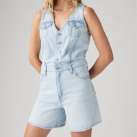We love this Vest Romper for its ultra-flattering fit, button-up vest top and instantly recognizable Levi's® details, like branded buttons and stitch detailing. - An ultra-flattering romper - Cut with a standard fit - With Levi’s® branded metal buttons - We made this garment with soft, 100% cotton that gives it an easy, drapey fit. Style # 001WM0000 Color: Rom Com - Medium Wash How it Fits - Standard fit Composition & Care - 100% Cotton - Denim - Sleeveless - Machine wash cold, Do not bleach, Tumble dry medium, Hot iron if needed, Dry cleaning possible, Wash inside out with like colors - Made in Sri Lanka