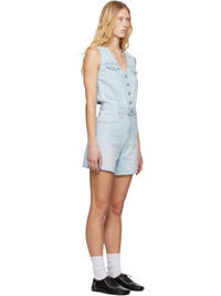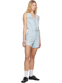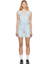 Non-stretch denim romper. Fading and whiskering throughout. · V-neck · Button closure · Flap pockets at chest · Inverted box pleats at front · Belt loops · Five-pocket styling · Zip fly · Twin pleats at yoke · Adjustable press-stud tabs at back waistband · Logo flag at back pocket · Logo-engraved silver-tone hardware · Contrast stitching in beige Supplier color: Rom com 100% cotton. Made in Sri Lanka 251099F070007