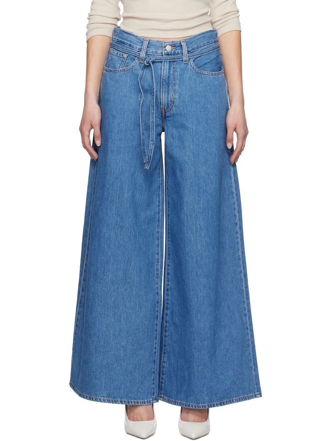 Oversized wide-leg non-stretch denim jeans. Fading throughout. · Mid-rise · Belt loops · Detachable self-tie belt · Five-pocket styling · Zip fly · Flared legs · Leather logo patch at back waistband · Logo flag at back pocket · Logo-engraved silver-tone hardware · Contrast stitching in tan Supplier color: Cause and effect 100% cotton. Made in Sri Lanka 251099F069053