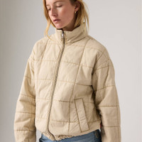 Stay warm and stylish with the Levi's® Box Quilted Relaxed Cotton Jacket. Designed with a laid-back fit and a modern box-quilted pattern, this jacket brings a fresh twist to classic outerwear. Crafted from breathable, durable cotton, it features a full front zipper, elasticized cuffs, and convenient side pockets for everyday ease. Inside, a smooth, lining enhances comfort, while an inner pocket on the left side adds practical storage for your essentials. Whether you're layering up for a chilly day or adding texture to your outfit, this jacket delivers comfort, function, and timeless Levi's® style. - Box quilted design - Center front zipper closure - Two lower welt pockets provides a tucked away space for your essentials - Adjustable bungee cords at the hem for a customizable fit Style # 595450288 Color: Creme Brule - White How it Fits - Standard Fit - Long sleeves Composition & Care - 100% Cotton - Cotton - Machine wash cold with like colors on delicate cycle. Use only non-chlorine bleach when needed. Tumble dry low. Cool iron if necessary - China