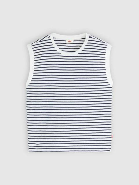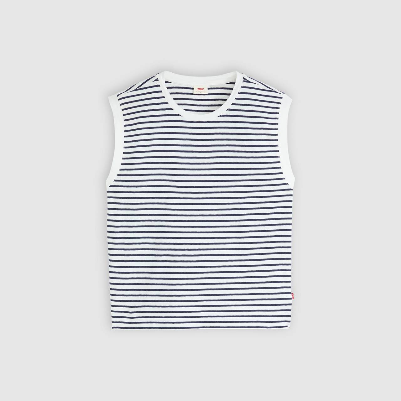 The definition of a warm-weather staple, our Boxy Tank features a crew neckline, a sleeveless design and a relaxed fit for extra movement. - A warm-weather staple - Cut with a relaxed, boxy fit - Features a sleeveless design Style # A87940018 Color: Emmi Stripe - Blue How it Fits - Relaxed fit Composition & Care - 100% Cotton - Slub - Crewneck - Sleeveless - Imported
