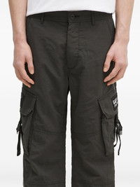 cargo-pocket graphic-patch trousers Highlights - Black - Cargo pockets - Side stripe - Drawstring fastening - Buckle detailing - Graphic patch Imported Composition Polyamide 100% Washing instructions Read Manufacturer Guidelines