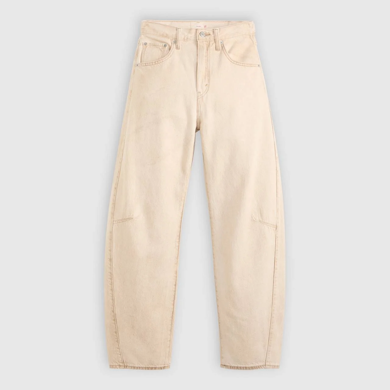 Love the classic baggy denim look but dread the waist gap? Look no further than our Cinch Barrel jeans. Cut with a flattering high rise and a curved leg, this style features adjusters on the back for a tailored-to-you fit that celebrates every curve. - Baggy jeans, without the waist gap - Cut with a barrel leg - Features adjusters on the back for a tailored-to-you fit - With knee darts - Designed to stack at the hem Style # 003V50004 Color: Cloudy Travertine - Tan How it Fits - Loose Through The Hip And Thigh - High rise - Tapered leg Composition & Care - 100% Cotton - Denim - Non-Stretch - 5-pocket styling - Imported