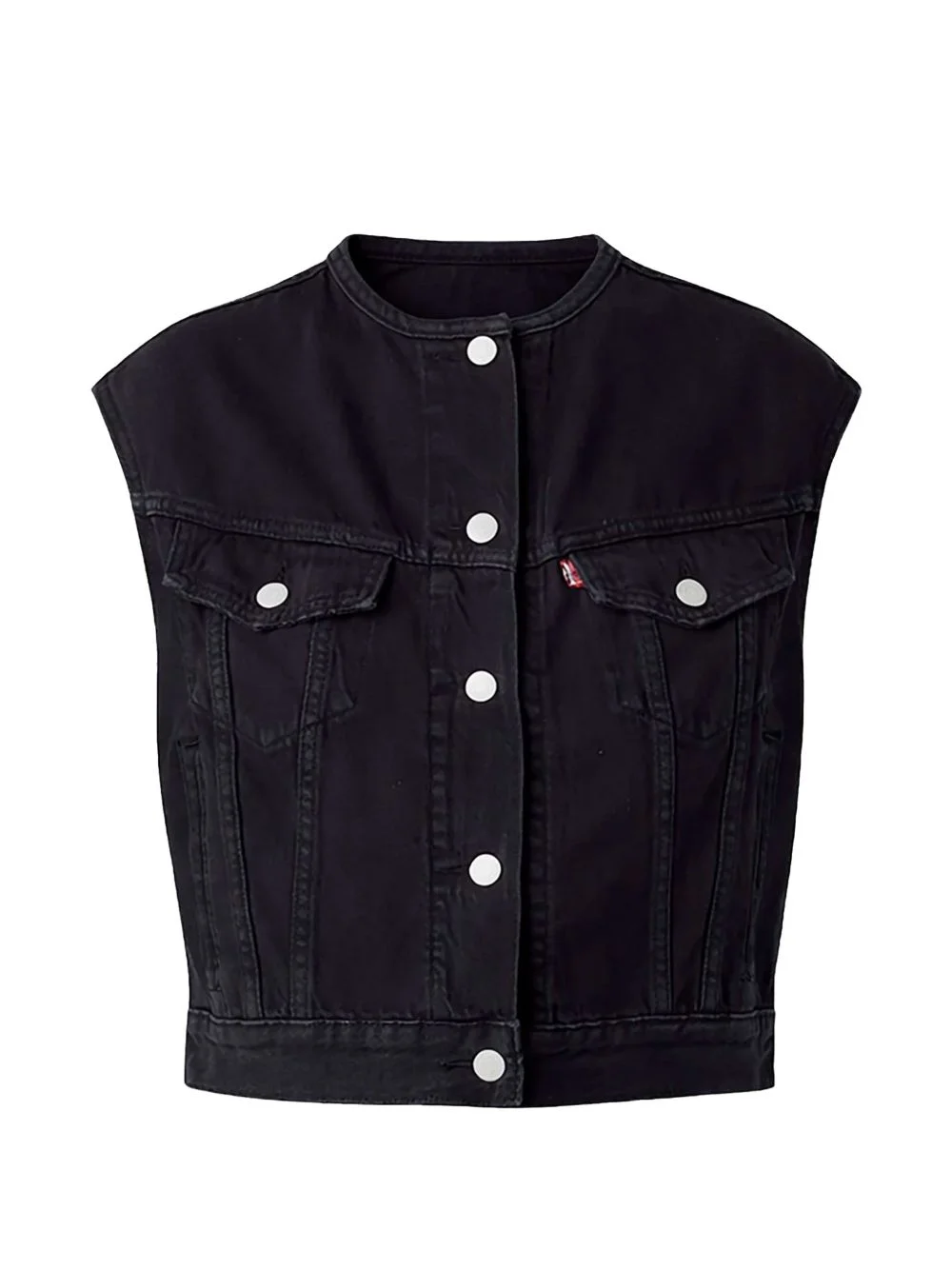 collarless buttoned vest Highlights - Black - Button fastening - Chest pockets - Sleeveless - Shrunken fit - Collarless Imported Composition Outer: Cotton 55%, TENCEL™ Lyocell (LENZING) 45%