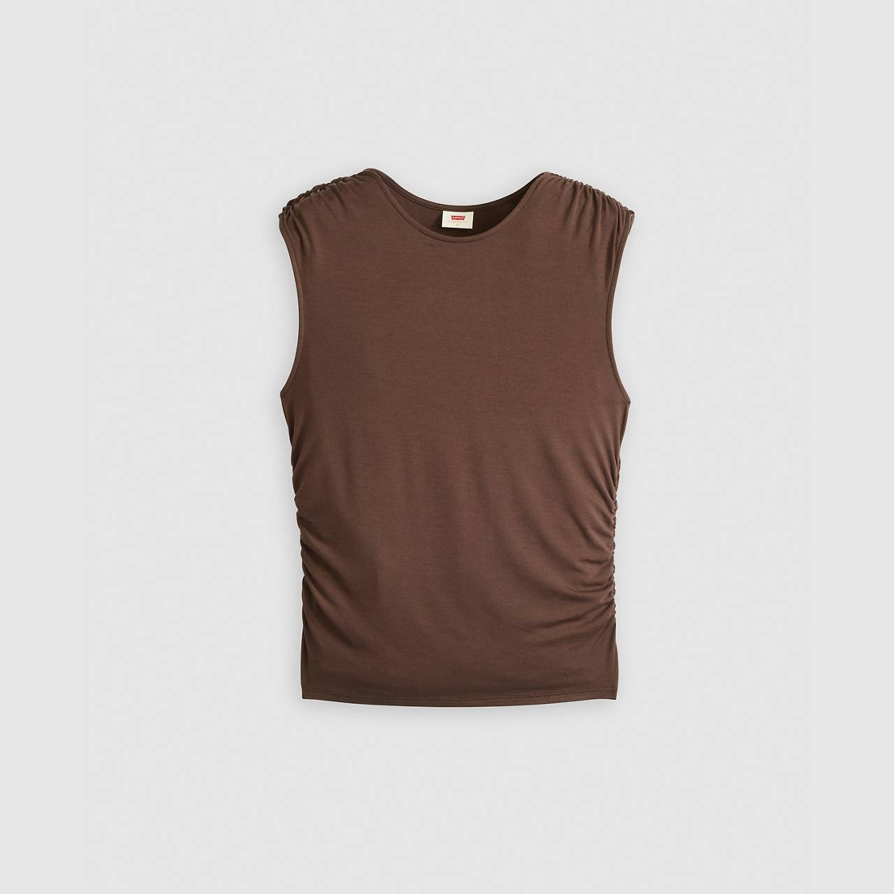 Swap out your everyday tee with our Crystal Ruched Top. We designed it with sleeveless cut, a slim fit and a ruched design. - An upgrade to your everyday top - Cut with a slim fit - With ruched detailing Style # 003QL0004 Color: Bracken - Brown How it Fits - Slim fit Composition & Care - 94% Viscose (ECOVERO™), 6% Elastane - Jersey - Sleeveless - Imported