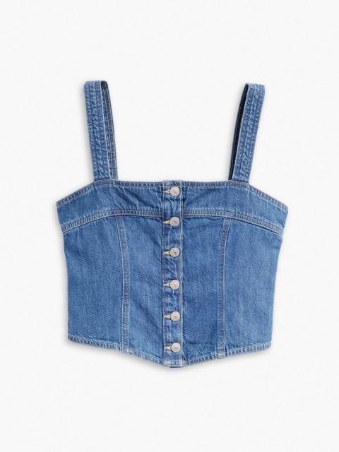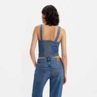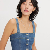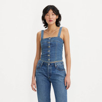 Part tank, part corset. Our Drea Tank features a cropped, figure-hugging fit, thin straps and a button-up front. To top it off, we added corset seam detailing and smocked panels for added comfort. - An ultra-flattering corset tank - Cut with a cropped, slim fit - With a button-up front - Features a corset seam detailing - Straps feature an interior button for adjustability Style # A76140001 Color: Paper Map - Medium Wash How it Fits - Slim fit Composition & Care - 100% cotton - Denim - Sleeveless - Imported