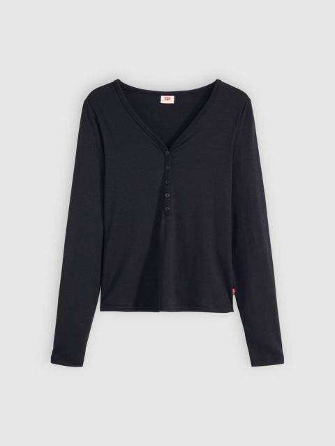 Your everyday, go-to henley—but softer. Our Dreamy Henley features a v-neckline, a three-button placket and a figure-hugging slim fit. The best part? It was crafted with soft-to-the-touch fabric for all-day comfort. - Your everyday, go-to henley—but softer - Cut with a slim fit - With a four-button placket - Dreamy, right? This garment was crafted with soft-to-the-touch fabric for all-day comfort. Style # 003PV0000 Color: Anthracite Night - Black How it Fits - Slim fit Composition & Care - 92% Modal (Lenzing), 8% Elastane - Rib Knit - Henley - Long sleeves - Imported