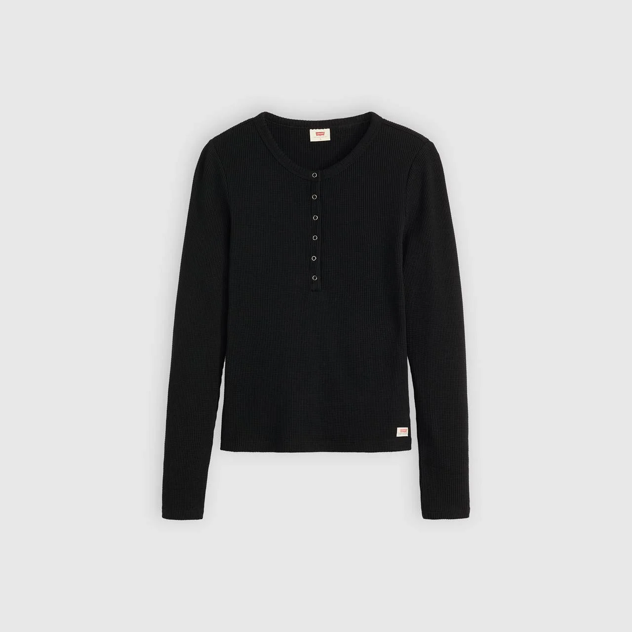 Inspired by one of the first knitwear pieces we made in the early 1900s, Levi's® Dry Goods was resurrected in the late '90s—and now, it's back again. Straight from the '90s, this Waffle Henley is designed with a v-neckline, a three-button placket, a cropped, slim fit and a soft, waffle-knit fabric. - Part of Levi's® Dry Goods: a collection of all the pieces we loved in the ‘90s, made for today - A waffle-knit henley - Cut with a slim fit Style # 003PY0001 Color: Anthracite Night - Black How it Fits - Slim fit Composition & Care - 95% Cotton, 5% Elastane - Henley - Long sleeves - Imported