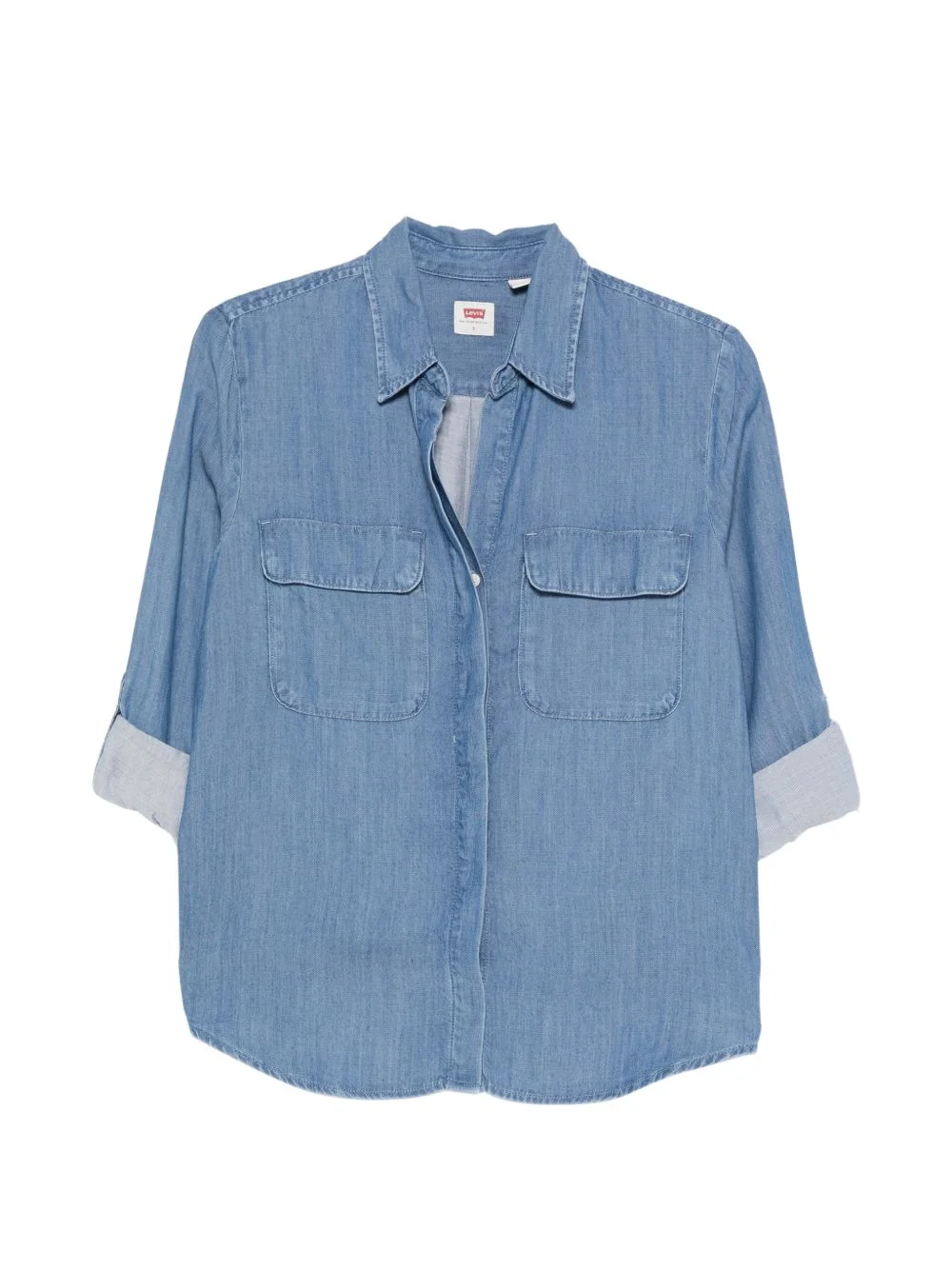 Elaine pocket utility shirt Highlights - Light blue - Point collar - Front button fastening - Long sleeves - Chest flap pockets - Buttoned cuffs Imported Composition Lyocell 100% Washing instructions Machine Wash