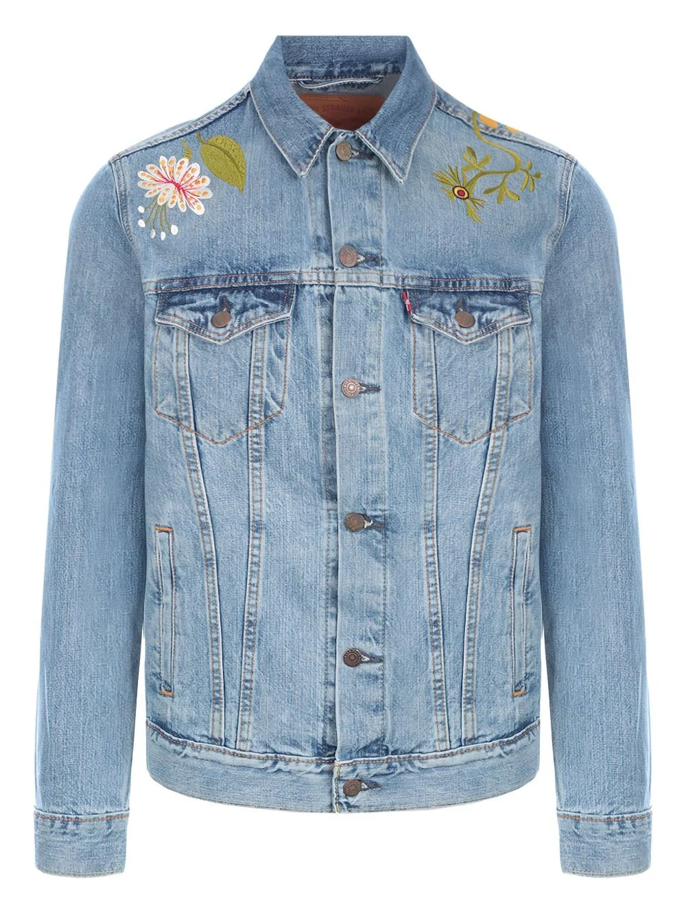 floral embroidered denim jacket Highlights - Light blue - Floral embroidery - Snake embroidery - Pointed collar - Metal button closure - Flap chest pockets - Welt side pockets Imported Composition Fabric 100% Washing instructions Read Manufacturer Guidelines
