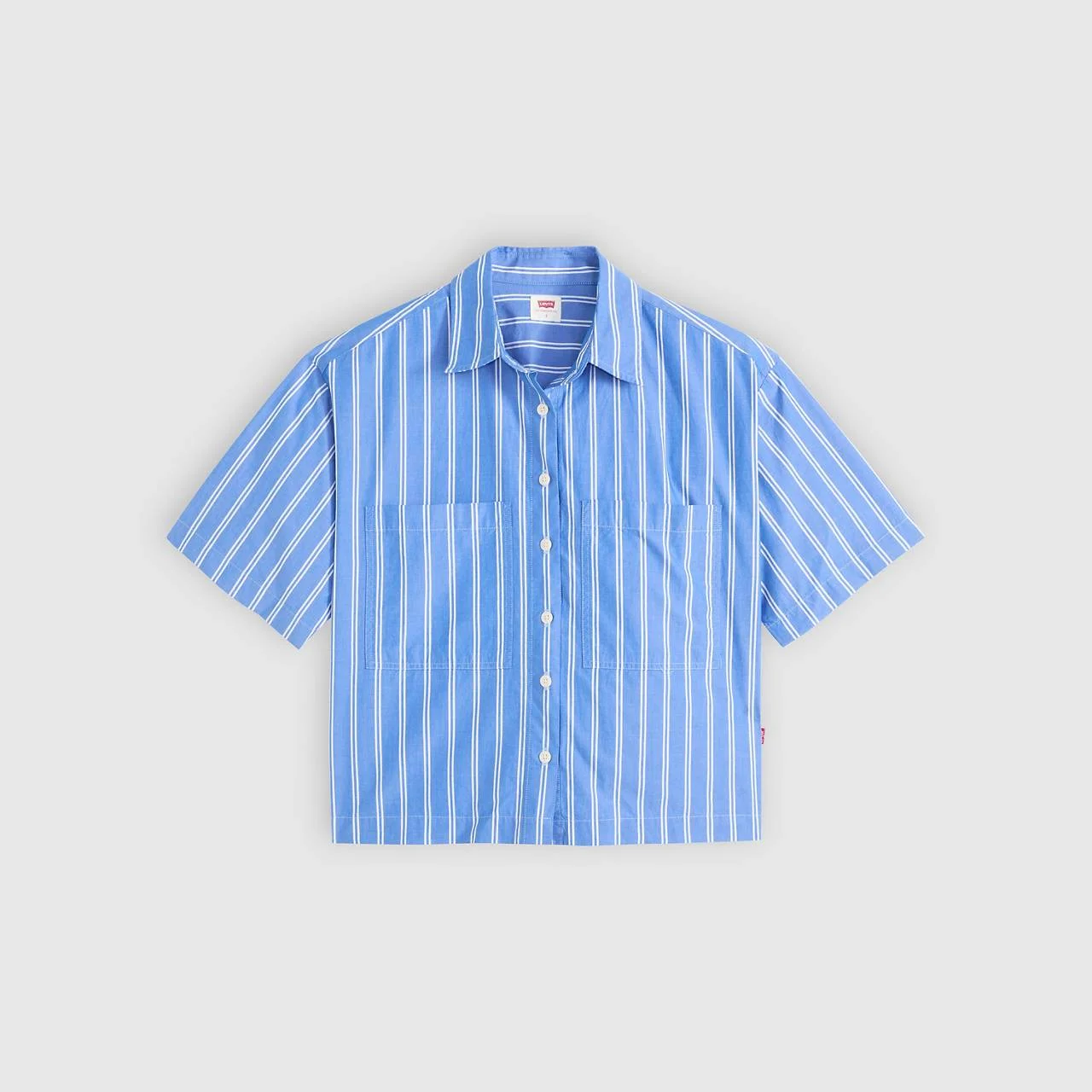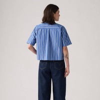 Our Harlie Short-Sleeve Cropped Shirt is short and sweet, just how we like it. Cut with a cropped, relaxed fit, it features a classic button-up front and two patch pockets. - An easy cropped button-up - Cut with a relaxed fit - With two chest patch pockets Style # 003QI0002 Color: Nautical Blue Stripe - Blue How it Fits - Relaxed fit Composition & Care - 100% Cotton - Poplin - Point collar - Short sleeves - Imported