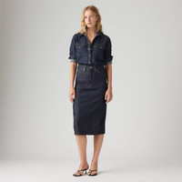 A vintage-inspired skirt, minus the hunt. Our High-Rise Back Slit Skirt features a waist-defining rise, a back slit and a flattering slim fit. - A vintage-inspired denim skirt - Cut with a slim fit - Features a back slit Style # 001VH0005 Color: Summer Soft Rigid - Dark Wash How it Fits - Mid rise: 29 1/2" - Leg opening: 36 5/8",Measurements based on size 27 waist Composition & Care - 100% Cotton (Transitional) - Denim - Non-stretch - Zip fly - 5-pocket styling - Transitional cotton - Wash your jeans once every 10 wears at most; this increases their lifespan and saves natural resources.Machine wash cold, Do not bleach, Tumble dry medium, Hot iron if needed, Dry cleaning possible, Wash inside out with like colors, Shrinkage in wash approximately 5% - Made in Sri Lanka