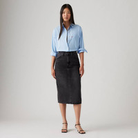 A vintage-inspired skirt, minus the hunt. Our High-Rise Back Slit Skirt features a waist-defining rise, a back slit and a flattering slim fit. - A vintage-inspired denim skirt - Cut with a slim fit - Features a back slit Style # 001VH0004 Color: Wandering Spirit - Black How it Fits - Mid rise: 29 1/2" - Leg opening: 36 5/8",Measurements based on size 27 waist Composition & Care - 95% Cotton, 5% Recycled Cotton - Denim - Non-stretch - Zip fly - 5-pocket styling - Recycled cotton - Wash your jeans once every 10 wears at most; this increases their lifespan and saves natural resources.Machine wash cold, Do not bleach, Tumble dry medium, Hot iron if needed, Dry cleaning possible, Wash inside out with like colors - Made in Pakistan