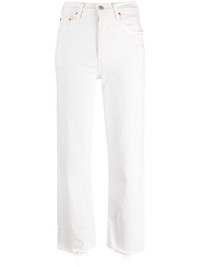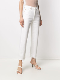high-rise straight-leg trousers Noted for their iconic denim creations, Levi’s prides itself on ensuring comfort, timeless style and durability. Ticking all those boxes, these straight-leg jeans have been constructed from a soft cotton blend and finished with raw-cut edges for added appeal. Imported Composition Cotton 97%, Polyester 2%, Spandex/Elastane 1% SIZE & FIT Model measurements Height 5 ft 11 in(1.8 m) Bust/Chest 31.1 in(79 cm) Hips 34.3 in(87 cm) Waist 22.8 in(58 cm) FittingInformation This piece fits true to size. We recommend you get your regular size Designed to be fitted at the waist and hips, loose over the leg Made with a mid-weight stretch fabric