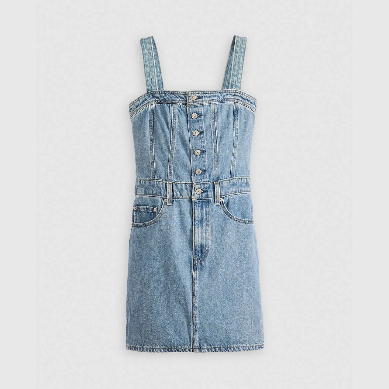 Our Iconic Button-Up Dress gets its name for a reason. Designed with drapey denim, it features thin, adjustable straps, a button-up front and a mini cut. - An iconic mini dress - Cut with a slim fit - Features adjustable straps - We made this garment with soft, 100% cotton that gives it an easy, drapey fit. Style # 001WE0001 Color: Chill Day - Medium Wash How it Fits - Slim fit Composition & Care - 100% Cotton - Denim - Non-stretch - Sleeveless - Machine wash cold, Do not bleach, Tumble dry medium, Hot iron if needed, Dry cleaning possible, Wash inside out with like colors - Made in Sri Lanka