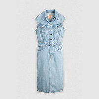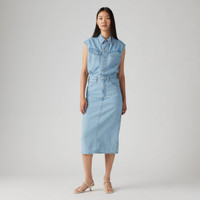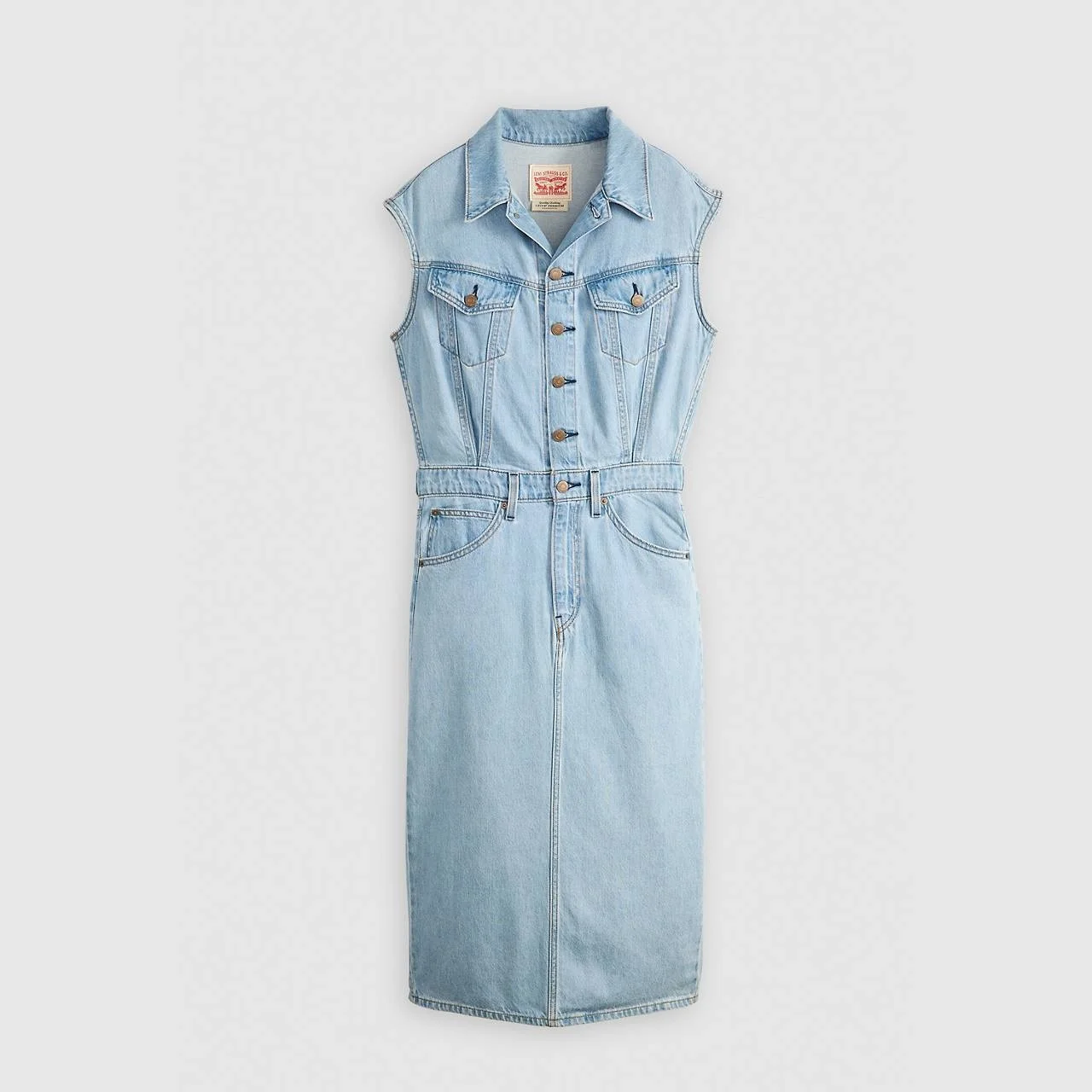 Our Iconic Sleeveless Dress gets its name for a reason. Designed with drapey denim, it pays homage to our timeless Trucker Jacket with two front pockets and a classic button-up design—all topped off with the perfect midi length. - An iconic midi dress - With two front chest pockets - Features a button-up front - We made this garment with soft, 100% cotton that gives it an easy, drapey fit. Style # 001WF0002 Color: Wrapped In Blue - Light Wash How it Fits - Standard fit Composition & Care - 100% Cotton - Denim - Non-Stretch - Sleeveless - Machine wash cold, Do not bleach, Tumble dry medium, Hot iron if needed, Dry cleaning possible, Wash inside out with like colors - Made in Sri Lanka