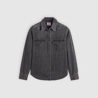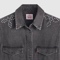 Western style is a fundamental part of our heritage—and you should make it part of yours, too. Designed with the famed pointed pocket and yolk detailing, our hardworking Iconic Western Shirt is here to stay and only gets better with age. - A long-sleeve denim western shirt - Features original western yoke details, chest pockets and a snap-front closure—symbolic of rugged American culture - Designed with a curved shirttail hem Style # 167860108 Color: Bejeweled - Black How it Fits - Standard fit Composition & Care - 100% Cotton - Denim - Point collar - Long sleeves - Imported