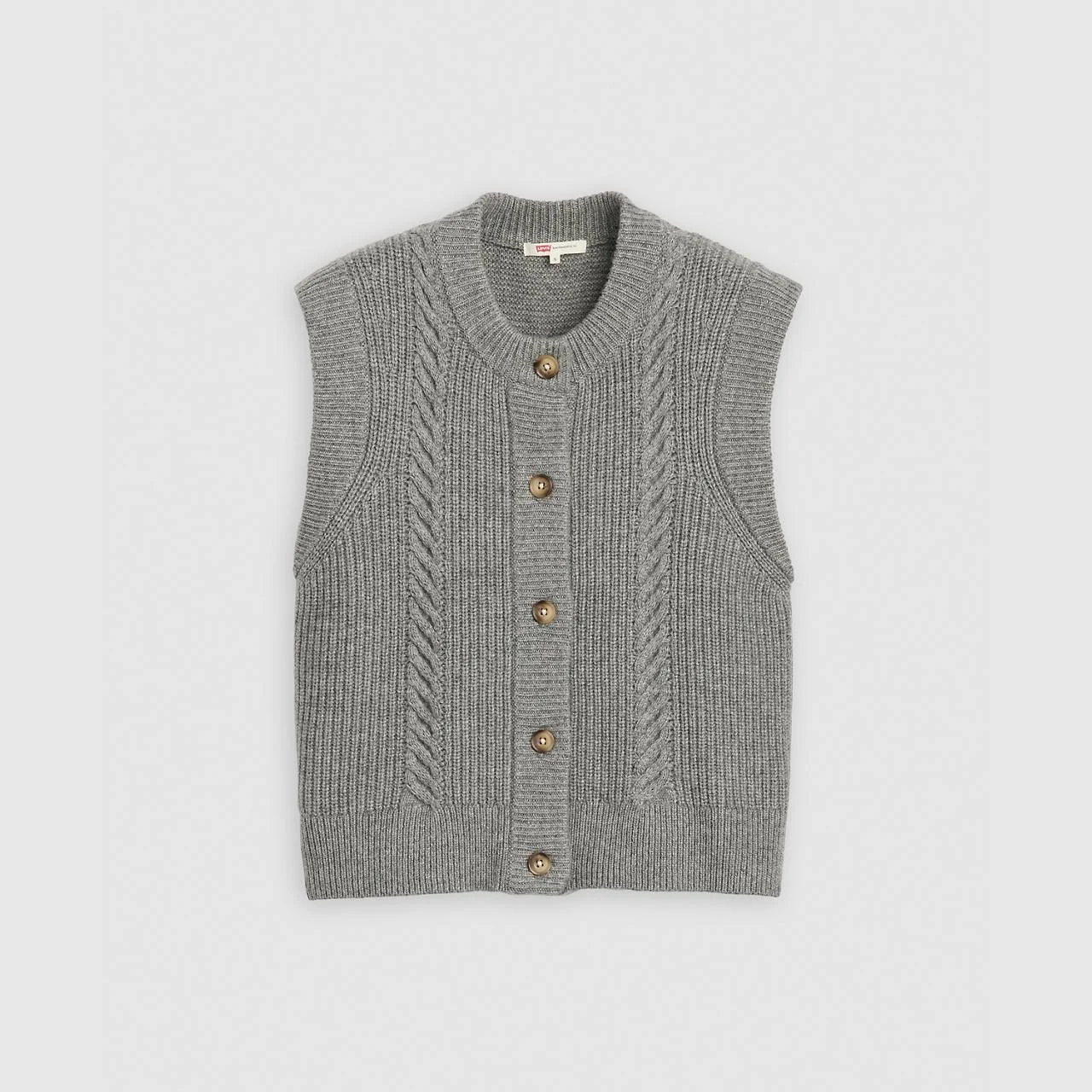 The quintessential, ultra-comfortable cable-knit vest. Our Ines Cable Sweater Vest features a crew neckline, ribbed edges and a button-up front. - An extra comfortable cable-knit vest - Cut with a standard fit - Made with a wool blend Style # 0038D0001 Color: Mid Heather Gray - Grey How it Fits - Standard fit Composition & Care - 45% Polyamide, 40% Wool, 15% Cotton - Wool Blend - Crewneck - Sleeveless - Imported