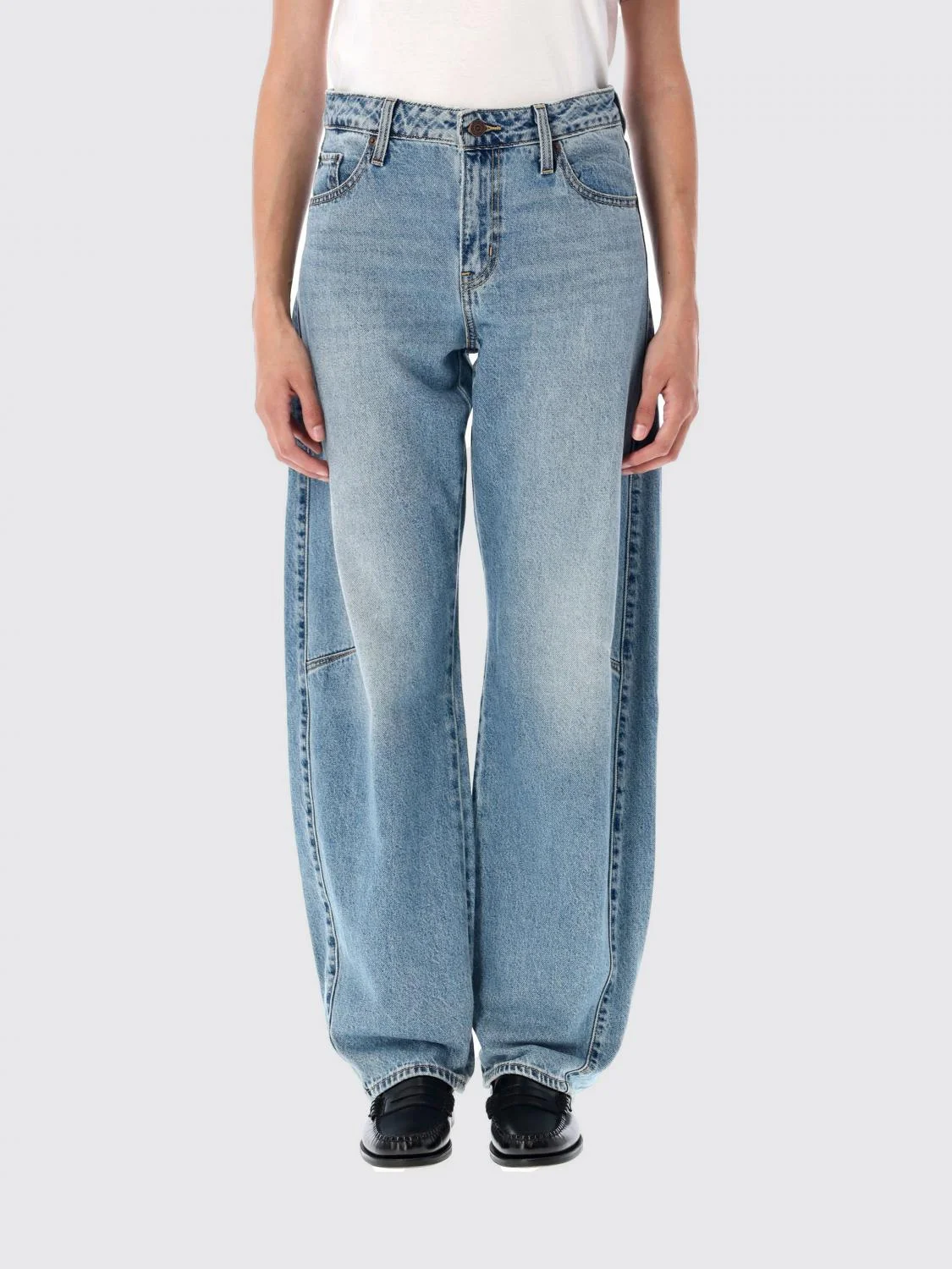 DESCRIPTION - Style: Casual - Pockets: 5-pocket - Waist: undefined - Bottom: With straight hemline - Closure: With button and zip - Materials: Cotton denim - Pattern: Plain-colored DETAILS AND CARE Composition 100% cotton SIZE AND FIT Sizes not available Size and fit Baggy Designer code: 0039A0002 0002 Giglio Code: H32270 Designer: Levi's Collection: Levi's Woman Category: Clothing Levi's