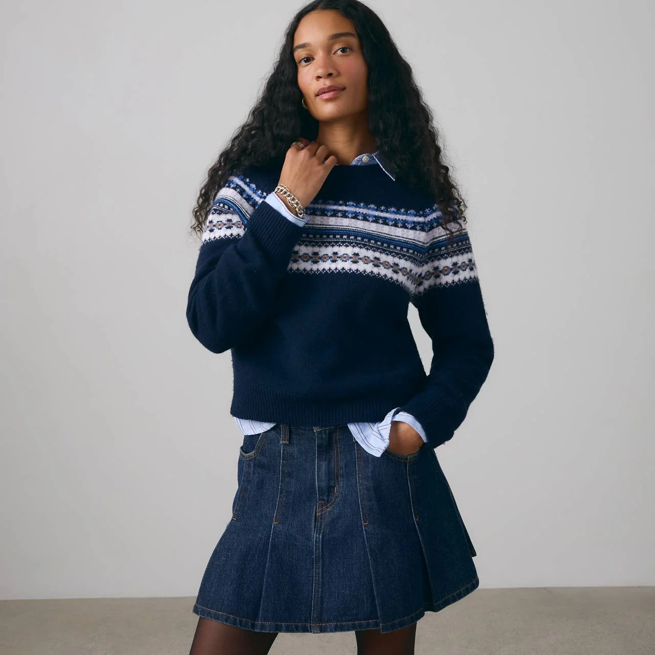 Cozy and timeless, our Lou Fairisle Sweater is a cold weather favorite. We designed it with a crew neckline and an easy standard fit. - A cozy fairisle sweater - Cut with a standard fit - Made with a wool-like blend Style # 0037Z0000 Color: Star Sapphire - Multi-Color How it Fits - Standard fit Composition & Care - 65% Polyester, 6% Wool, 29% Polyamide - Wool-like - Crewneck - Long sleeves - Imported