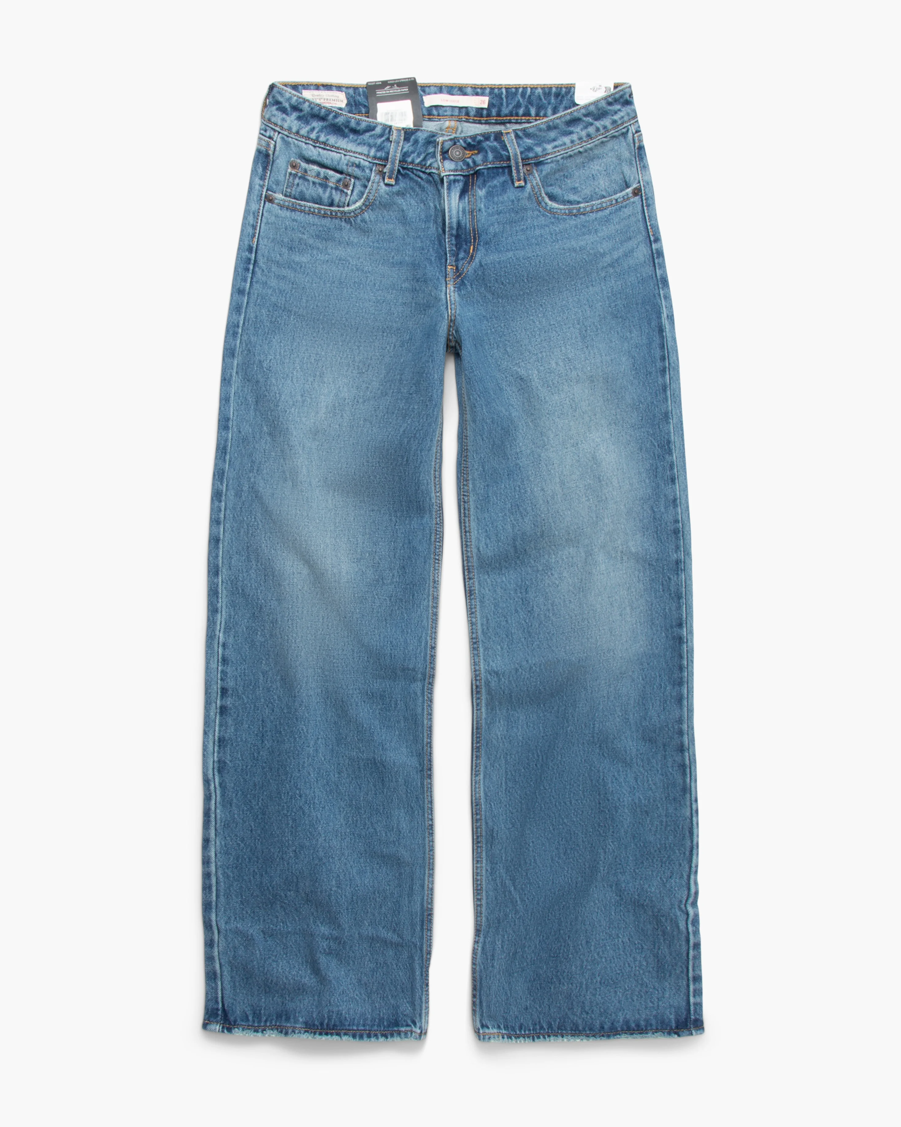Low-rise jeans with a straight, wide leg and relaxed fit through the hip and thigh. Inspired by early 2000s style in a medium wash. Non-stretch 100% cotton denim with classic 5-pocket styling. Note: runs small, size up one or two sizes.