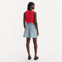 The classic mini skirt gets an A-line upgrade. Our Mini Flounce Skirt features a flattering mid rise, a cut that widens at the hip and a versatile mini length you can pair with just about anything. - The classic mini skirt gets an A-line upgrade - Cut with an A-line fit - Finished with a versatile mini length you can pair with just about anything Style # A87250001 Color: Blue - Medium Wash How it Fits - Easy Through The Hip - Mid rise: 17" - Inseam: N/A",Leg opening: 60 1/4",Measurements based on size 27 waist Composition & Care - 95% Cotton, 5% Recycled Cotton - Denim - Non-Stretch - Zip fly - 5-pocket styling - Recycled cotton - Wash your jeans once every 10 wears at most; this increases their lifespan and saves natural resources.Machine wash cold, Do not bleach, Tumble dry medium, Hot iron if needed, Dry cleaning possible, Wash inside out with like colors - Made in Sri Lanka