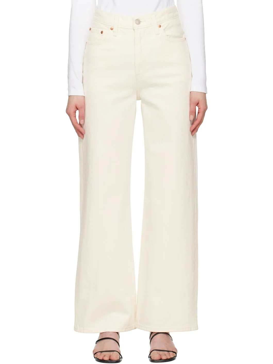 Wide-leg garment-dyed non-stretch denim jeans. · High-rise · Belt loops · Five-pocket styling · Zip fly · Leather logo patch at back waistband · Logo flag at back pocket · Logo-engraved silver-tone hardware Supplier color: Barely freezing/White 100% cotton. Made in Cambodia 251099F069056