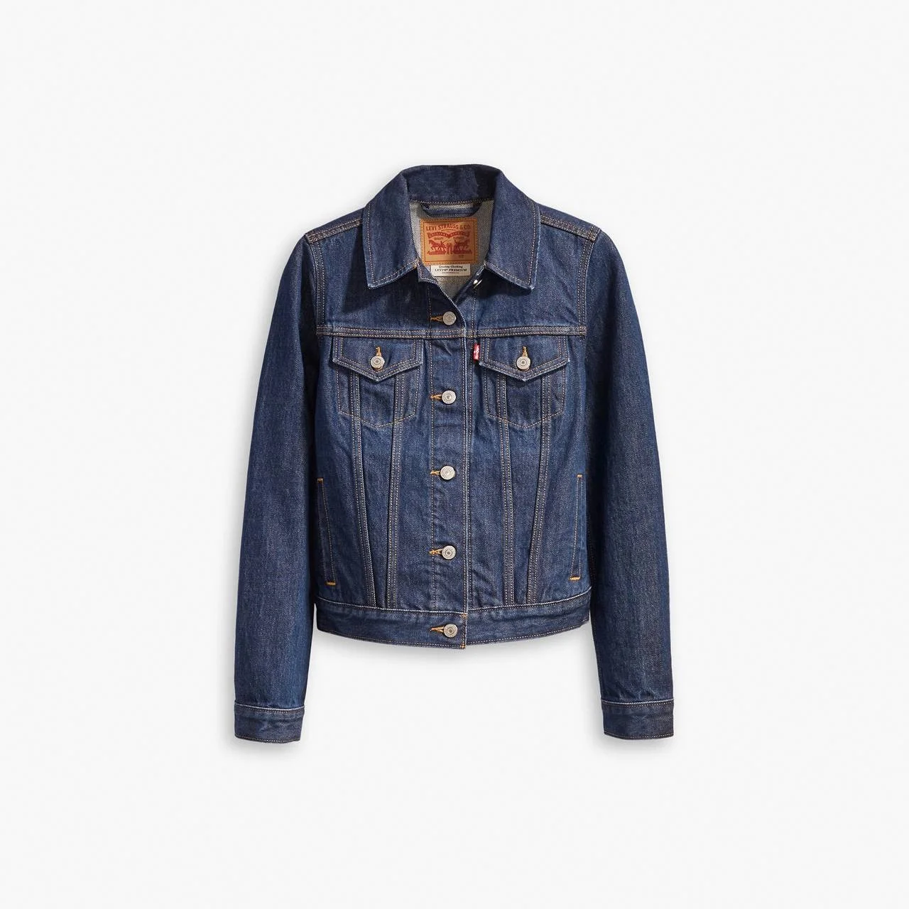 Our Original Trucker Jacket makes an outfit. You'd be hard-pressed to find a jacket with an easier shape, more versatile weight or inherent sense of cool. Bonus: The deep inside pockets are roomy enough for your essentials. - The original denim jacket since 1967 - Meant to be worn forever, wherever, whenever - With an easy shape and versatile weight - Complete with deep inside pockets Style # 299450036 Color: Clean Dark Authentic - Dark Wash How it Fits - Slim fit Composition & Care - 100% Cotton - Denim - Long sleeves - Machine Wash Cold, Do Not Bleach, Tumble Dry Medium, Hot Iron If Needed, Dry Cleaning Possible, Wash Inside Out With Like Colors