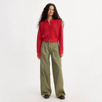 Like your grandpa's trousers, but cuter. We crafted these Pleated Wide-Leg Trousers with a super high rise, a wide leg cut and classic pleated detailing. - Timeless wide-leg trousers - Cut with a relaxed fit - With a high rise - This lightweight garment is made from supersoft, ultra-comfortable fabric - We made this garment with TENCEL™ Lyocell, a soft fiber sourced from wood. TENCEL™ is a trademark of Lenzing AG. Style # A75350000 Color: Deep Lichen Green How it Fits - High rise: 11 3/4" - Wide Leg - Inseam: 32",Leg opening: 25",Measurements based on size 27 waist Composition & Care - 58% cotton, 42% lyocell (Lenzing Tencel™) - Twill - Non-stretch - Zip fly - Non 5 Pocket - MMC lyocell - Imported