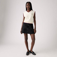 A flattering mini skirt that adds a touch of polish. Our Pleated Mini Skirt sits right at your waist and features a mini length with a tailored, pleated design. - A mini skirt with a touch of polish - Features a mid rise - Finished with a pleated design Style # 001VO0007 Color: Open Mind - Black How it Fits - Mid rise: CF: 14.5" - Leg opening: 47.625 CLOSED / 63.625 OPEN",Measurements based on size 27 waist Composition & Care - 95% Cotton, 5% Recycled Cotton - Denim - Non-Stretch - Zip fly - 5-pocket styling - Imported
