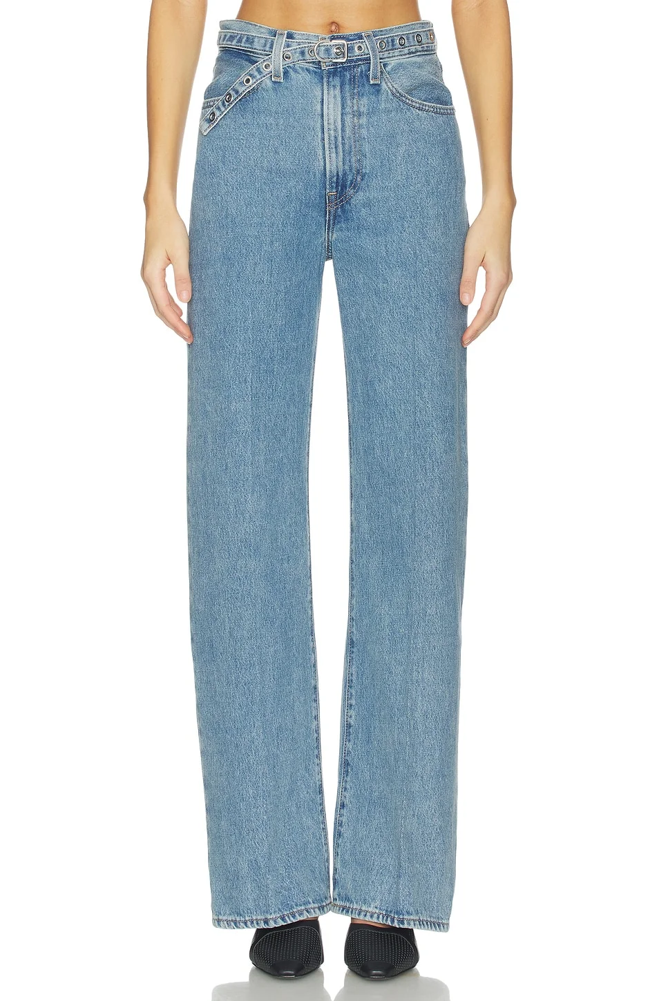 - 100% cotton - Machine wash - Zip fly and button closure Optional belt.3-pocket styling - Midweight rigid denim - Leg opening measures approx 20" - Revolve Style No. LEIV-WJ546 - Manufacturer Style No. 005LK-0000
