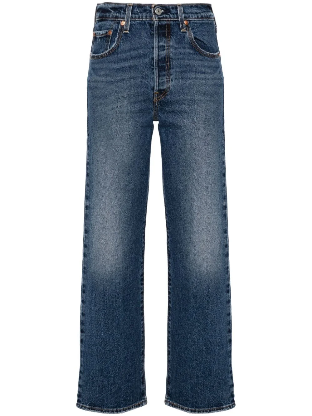 Ribcage Straight jeans Highlights - Indigo blue - Cotton blend - Denim - High-rise - Belt loops - Button fly fastening - Straight leg - Classic five pockets - Ankle-length Imported Composition Cotton 99%, Elastane 1% SIZE & FIT Model measurements Height 5 ft 10 in(1.78 m) Bust/Chest 31.49 in(80 cm) Hips 37 in(94 cm) Waist 23.62 in(60 cm) FittingInformation Designed for a straight-leg fit, these jeans allow for a close fit at the waist and an unrestricted and comfortable fit over the leg Constructed from stretch denim, this piece offers a stretch fit with durability This piece fits true to size – take your usual size Washing instructions Machine Wash