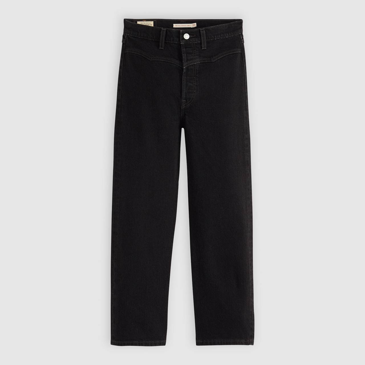 An icon gets a western upgrade. Our Ribcage Western jeans combine our signature highest high rise, timeless western-inspired yoking and a versatile straight leg. - A versatile fit with a flattering high-rise - Finished with a classic straight leg - Hits at the ankle - Features a smooth front with no pockets Style # 0049U0000 Color: Rock Era - Black How it Fits - Slim Through The Hip And Thigh - Super high rise - Straight leg Composition & Care - 99% Cotton, 1% LYCRA® - Denim - Stretch - Button fly - 5-pocket styling - Imported